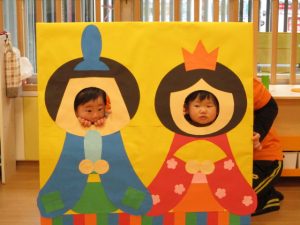 最後に『顔出しボード』で、かわいいおだいり様とおひな様になって、ハイポーズ?![]()