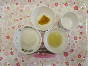4月11日(木)のこんだて *ももぐみさん(中期) ・おかゆ(10倍がゆ) ・みそ汁 ...
