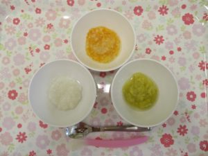 4月3日(水)のこんだて *ももぐみさん(中期) ・おかゆ(10倍がゆ) ・みそ汁 ・...