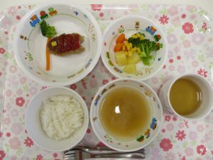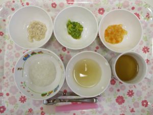2019.05.08|給食ピックアップ 本日のお給食 5月8日(水)のこんだて *ももぐみさん(中期) ・10倍がゆ ・みそ汁 ・こいのぼりバーグ ・含め煮 *いちごぐみさん・りんごぐみさん ・ごはん ・玉ねぎのみそ汁 ・こいのぼりバーグ ・含め煮 前へ 次へ