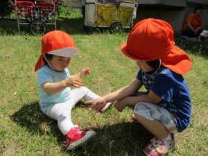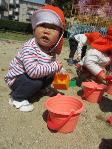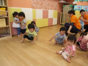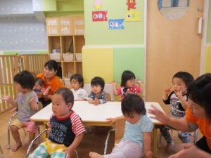 さて、先日、0歳児ももぐみさんの1日をブログで紹介しましたが、今回は、いちごぐみさんの子どもたちの様子をお伝えしようと思います![]()