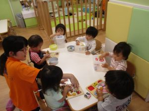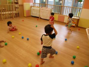 お部屋や戸外で汗をかくくらい元気いっぱいに遊んでいるサンライズキッズ高槻園の子どもたちです![]()
