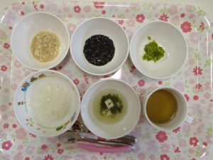 5月15日(水)のこんだて *ももぐみさん(中期) ・10倍がゆ ・わかめスープ ・ポ...
