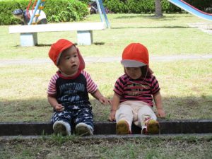 もも組さんはシートの上で外気浴 気持ちよさそうですね