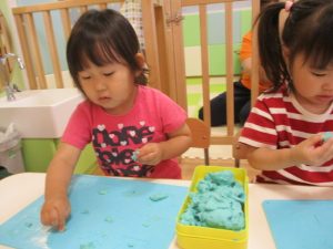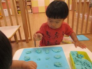 小麦粉粘土遊びを楽しんでいますよ![]()