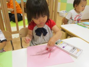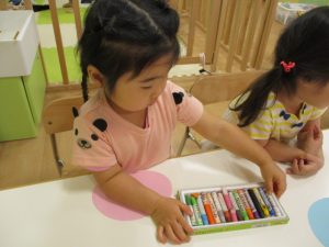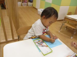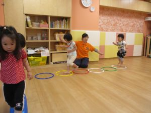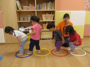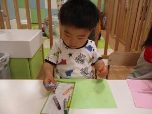 このように戸外遊びに行けない日は、机上遊びをしたり、体を動かす室内遊びを楽しんでいます![]()