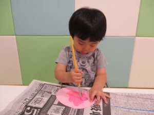 その上から、今度は絵の具でもっとぬってみましたよ![]()