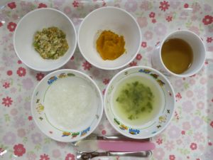 6月6日(木)のこんだて *ももぐみさん(後期)* ・7倍がゆ ・みそ汁 ・五目豆 ・...