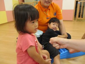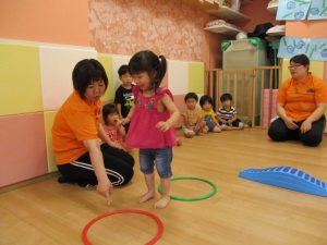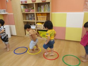 「フープは両足でピョンとジャンプしてね!!」
