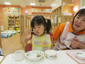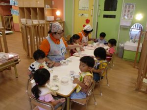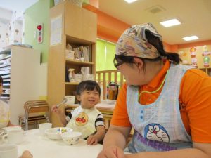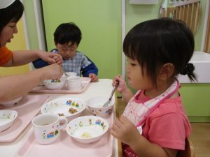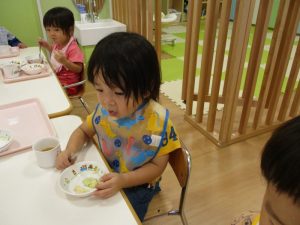 たくさん遊んだ後は、おいしい給食を食べますよ![]()