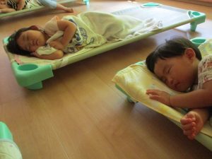 たくさん遊んで、たくさん食べた後は、お昼寝の時間です![]()