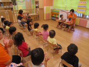 みんなで手拍子?と素敵な歌声で、誕生児のお友だちをお祝いしましたよ![]()