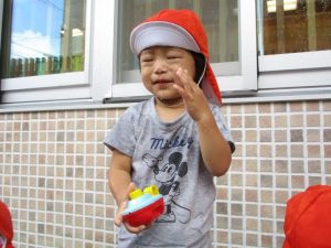 ももぐみ?さんや、いちごぐみ?さんは、まだお水が怖いお友だちも・・・![]()