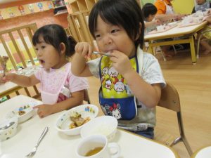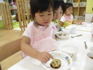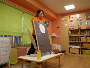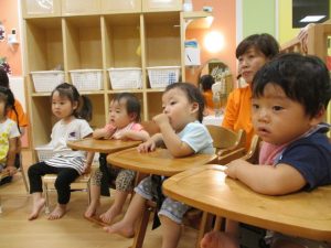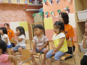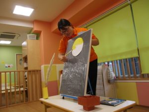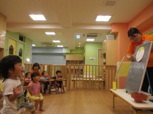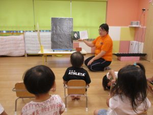 おばけが月見団子に化けるお話でしたが、子どもたちは怖がることなく、じっくり真剣に見ていましたよ