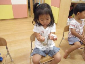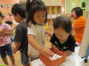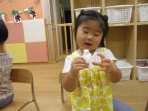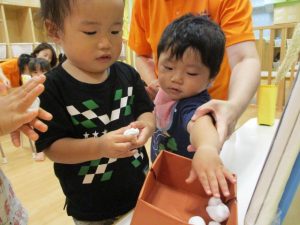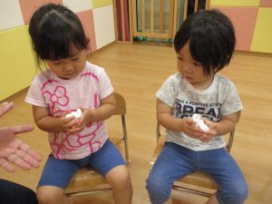 ふわふわ紙粘土をこねこね、まるまる・・・