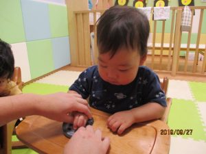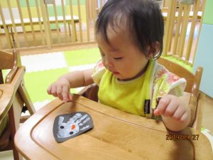「ペタペタ。」と、保育者が言うと、一緒にまねっこをしながら、言ってるお子さんもいて、可愛らしかったです![]()