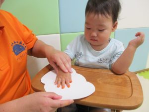 手形を画用紙に付けたのにまだ手が黒いと見ているお子さんもいます![]()