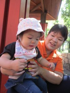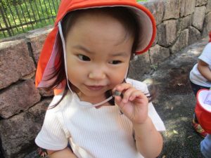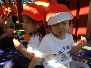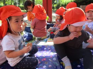 お外でお友だちと食べるおやつ、おいしいね![]()