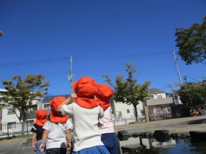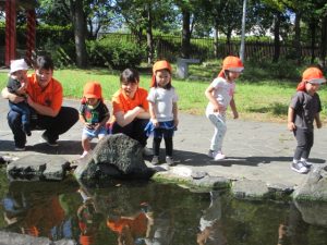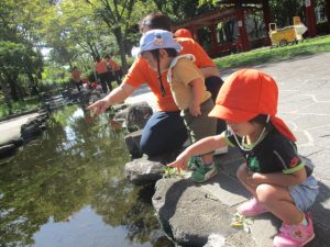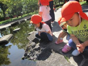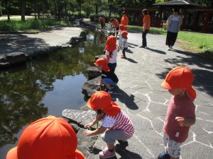 水の流れを見ながら、「泡がプクプクっていってる。」と、皆思い思いにお話をしてくれました![]()