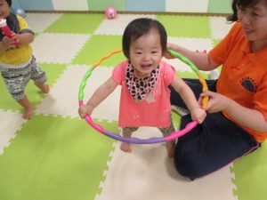 フープ→ウエーブバランス平均台→小山のマット→タンバリンを叩いてゴールです![]()
