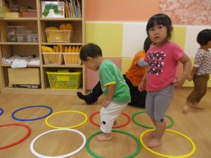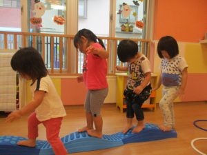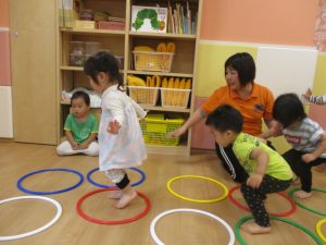 ジャンプも片足ジャンプ、そして足を広げて両足ジャンプをしているお友だちもいましたよ