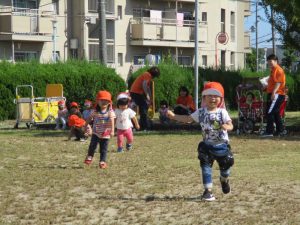 初めてでしたが、りんご組のお友だちは、ゴールの保育士まで、走ることが出来ましたよ