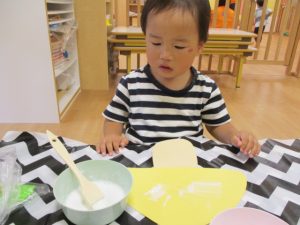 普段、糊を嫌がるお子さんもハケを使うことを楽しんでいましたよ![]()