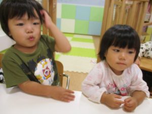 子どもたちは、このどんぐりさんを見て、保育者にうたってとアイコンタクトを送ってくれます![]()