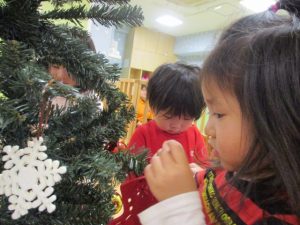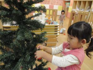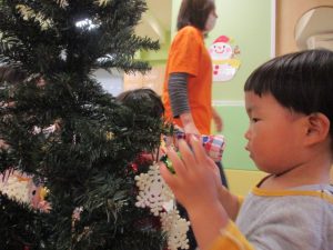 りんご組さんがクリスマスツリーの飾り付けをしてくれましたよ![]()