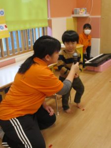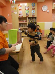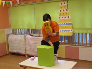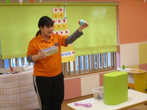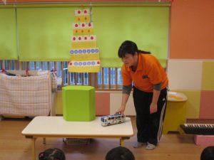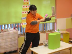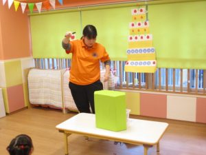 最後におたのしみ、保育者からの出し物のプレゼントです?![]()