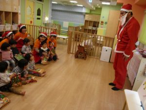 この1年の最後のブログでは、12月生まれの誕生会&サンタさんが来た時の様子をお伝えしたいと思います