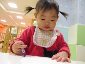 次は、クレパスでお絵かきです![]()