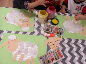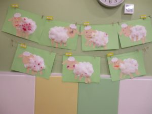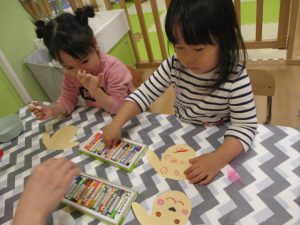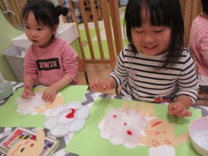 では、早速りんご組さんの2月の壁面製作の様子をご覧ください![]()