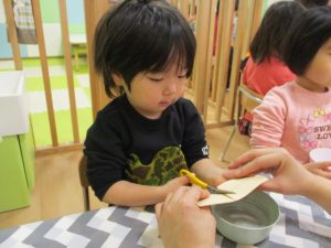 ハサミで切る練習を兼ねて、製作でハサミを使いましたが、皆真剣なお顔で取り組んでいましたよ![]()