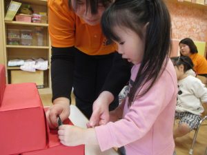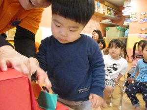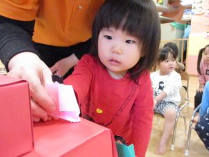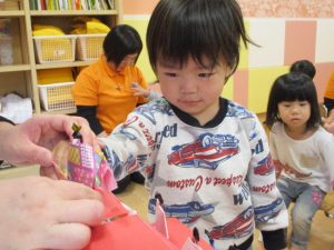 子どもたちは、かわいいお雛様とお内裏様が出てきたので、とても嬉しそうな表情をしていましたよ![]()