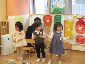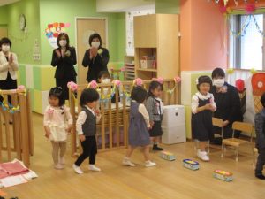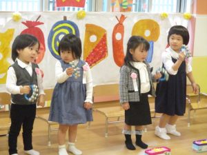 最後のブログは、全クラスで行った「お楽しみ会」とりんご組さんの「卒園式」の様子をお伝えしようと思います