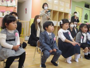 りんご組の子どもたちが緊張の面持ちで始まった卒園式