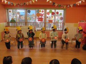 次に英語の歌や鈴を使った合奏を皆の前でがんばって発表をすることが出来ました
