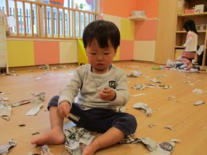 新聞紙をちぎって・・・紙吹雪