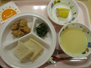 ※今日もほぼ完食で、たくさん食べました。ほうれん草は少し残っていましたが、苦手な物も、少しでも食べてみるというチャレンジ精神が素晴らしいです♪給食でも、成長できることはたくさんありますね♪