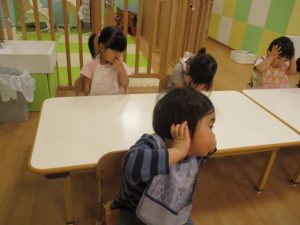 保育者の話を聞いて、頭を守ることが出来ました![]()