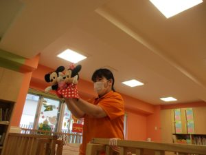 ミッキーマウスマーチに合わせて、パペットのミッキー&ミニーが遊びに来てくれました![]()