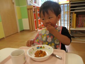 お誕生日メニューの給食や午後のおやつもおいしくいただきましたよ![]()