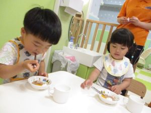 お誕生日のお友だちにもお手伝いをしてもらいましたよ![]()