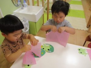 これから雨降りの日が多くなると思いますが、保育室内でも季節の移り変わりを感じられる活動に取り組んでいきたいと思います![]()