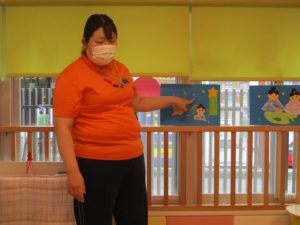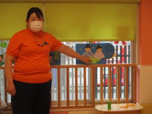 最初にももぐみさん?から順番に、笹飾りと壁面製作の紹介をしました (^_-)-☆