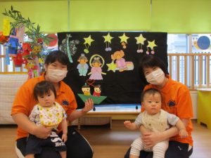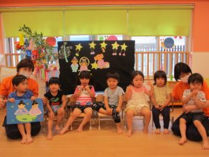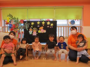 その後は、七夕?の由来を聞いてから、パネルシアター『つやちゃんのたなばた』☆彡?☆彡を鑑賞しました![]()