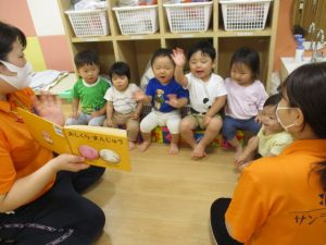 サンライズキッズ保育園では、絵本の読み聞かせに力を入れております。