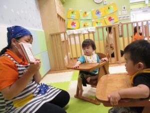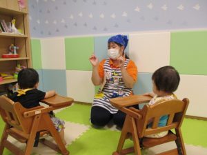 絵本の前には、先生が楽しい手遊びをしてくれますよ![]()