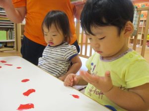 ももぐみさん?のお友だちもフィンガーペインティングに参加しましたよ![]()